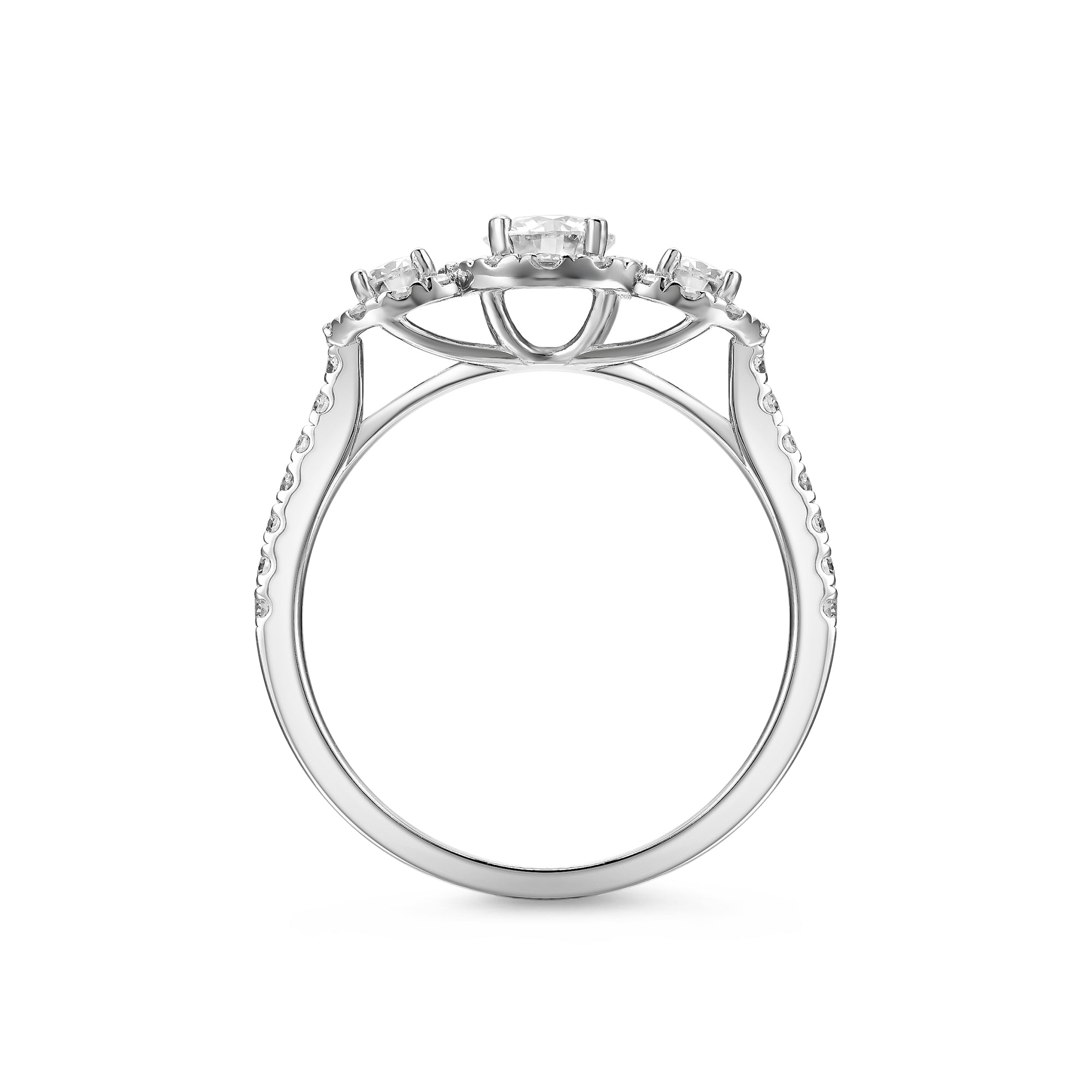 Halos y pavé: 49 moissanitas de 0.01 ct que añaden un toque de lujo y resplandor.