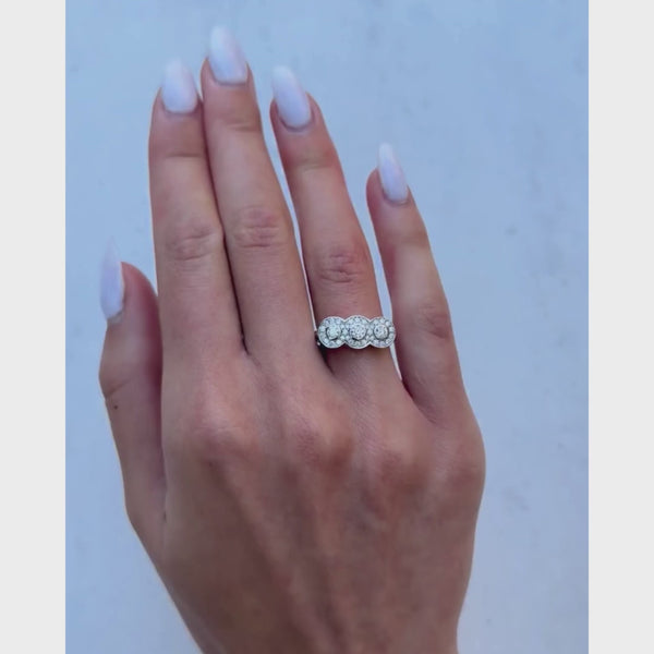 El Anillo María es la esencia de la elegancia clásica, inspirado en la belleza de los diseños vintage.  Este anillo es una declaración de sofisticación. Piedras principales engastadas en bisel. El halo de pequeñas piedras delicadas rodea la piedra central, mientras que la galería cuidadosamente diseñada le otorga estilo a la atemporalidad que perdura en el tiempo.