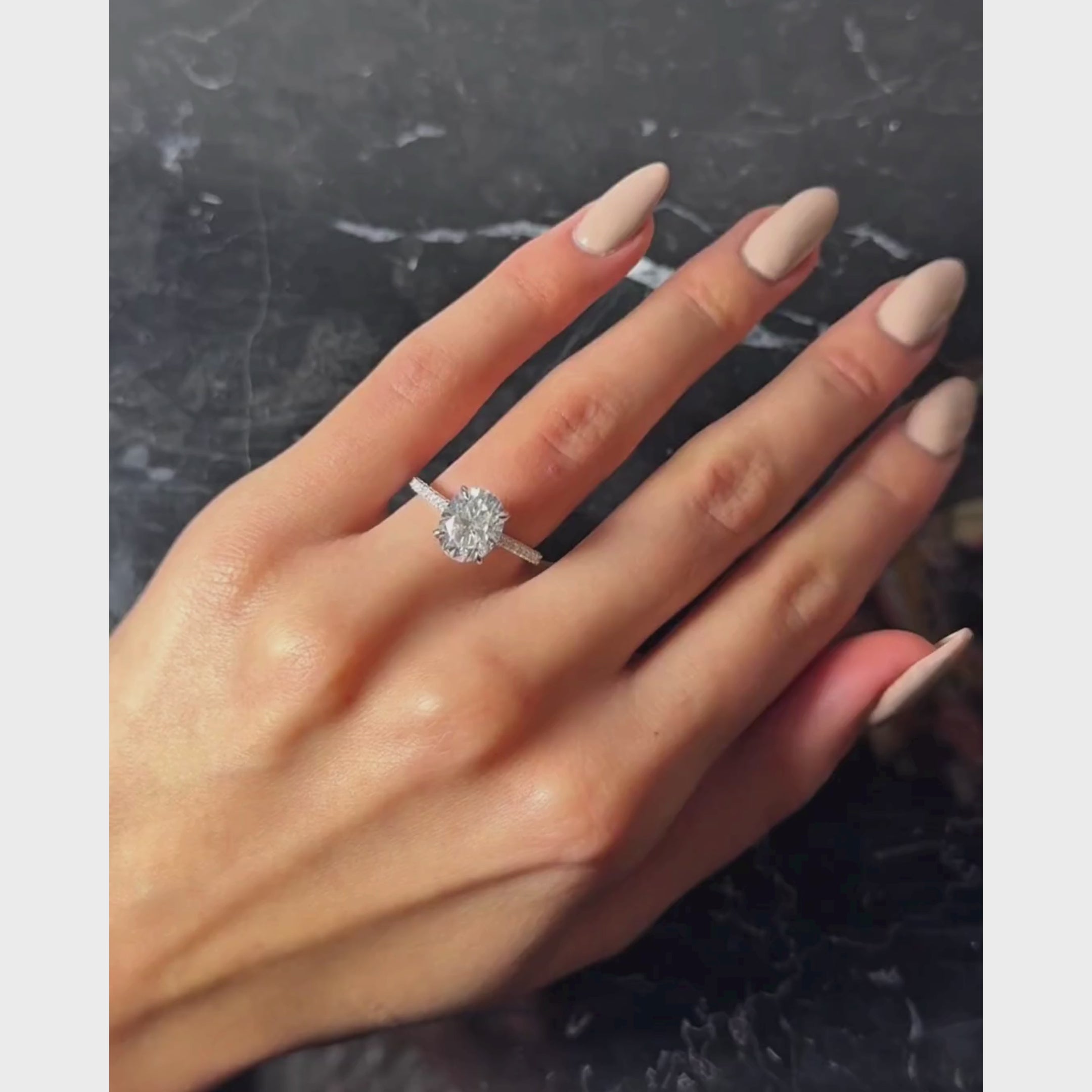 Anillo Oval Pavé Halo Escondido 3ct