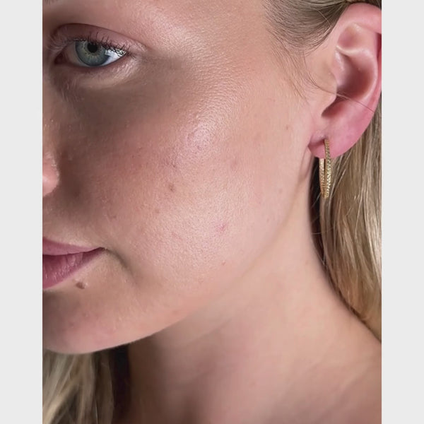 Los Aros de Argolla bañadas en oro y moissanitas son perfectos para toda ocasión! Este diseño elegante da un toque juvenil y moderno. Tienen la puerta perfecta para usar en toda ocasión.