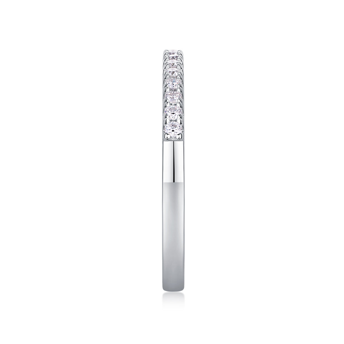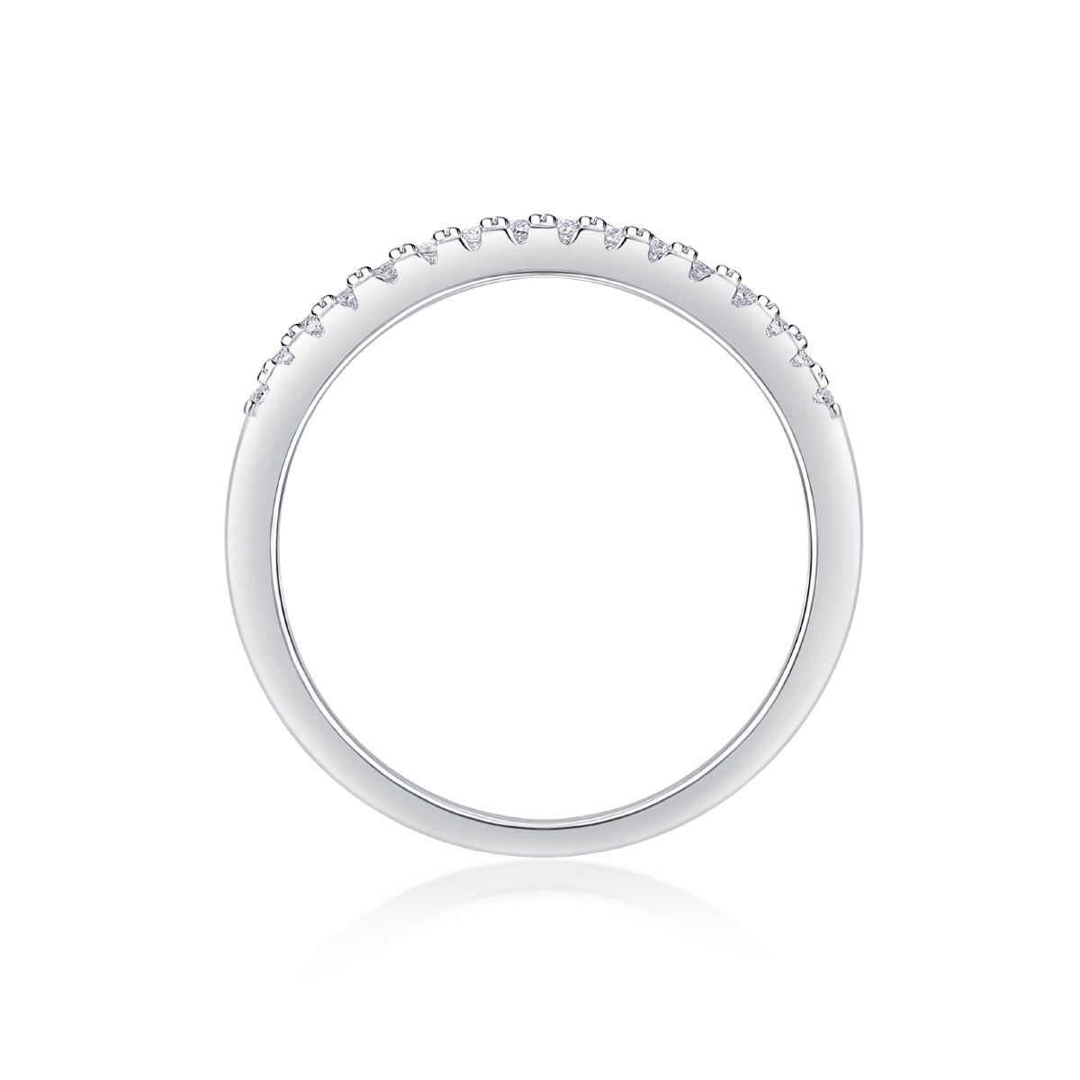 Forjado en plata 925 con baño de rodio, su diseño liviano y refinado lo convierte en el complemento perfecto para realzar un anillo central o lucirlo como banda de matrimonio minimalista.
