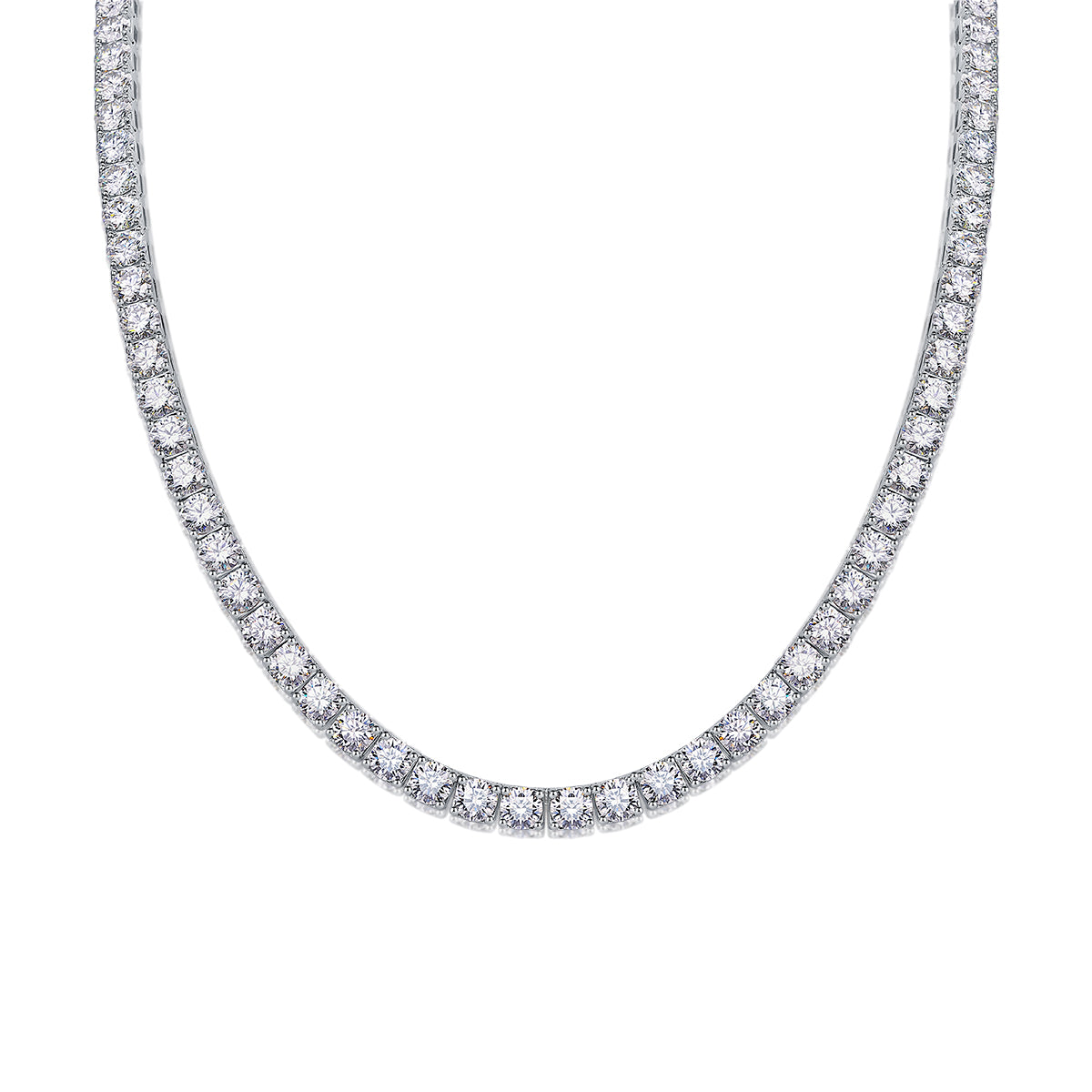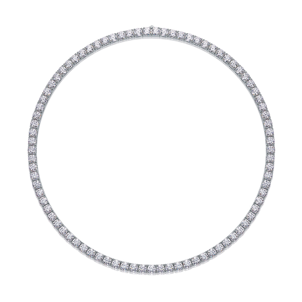 Un ícono de elegancia. Este collar tennis está compuesto por una hilera continua de moissanitas de 0.50 quilates cada una, meticulosamente engastadas para lograr un destello uniforme y cautivador.