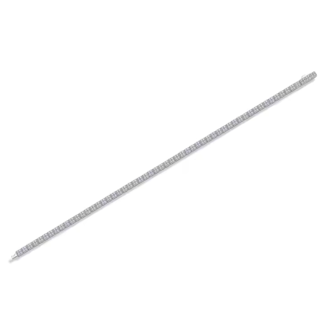 Un diseño atemporal, reinterpretado con elegancia moderna. Esta pulsera tipo tenis de 3 mm presenta una hilera impecable de moissanitas engastadas en grupos de 4 en delicados eslabones cuadrados, cada uno trabajado con precisión para capturar la luz desde todos los ángulos.