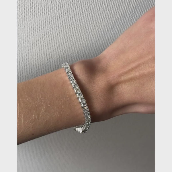 La Pulsera Tennis Clásica destaca por su diseño limpio y equilibrado, compuesto por una línea continua de moissanitas corte princesa de 4x4 mm, que brillan con intensidad.